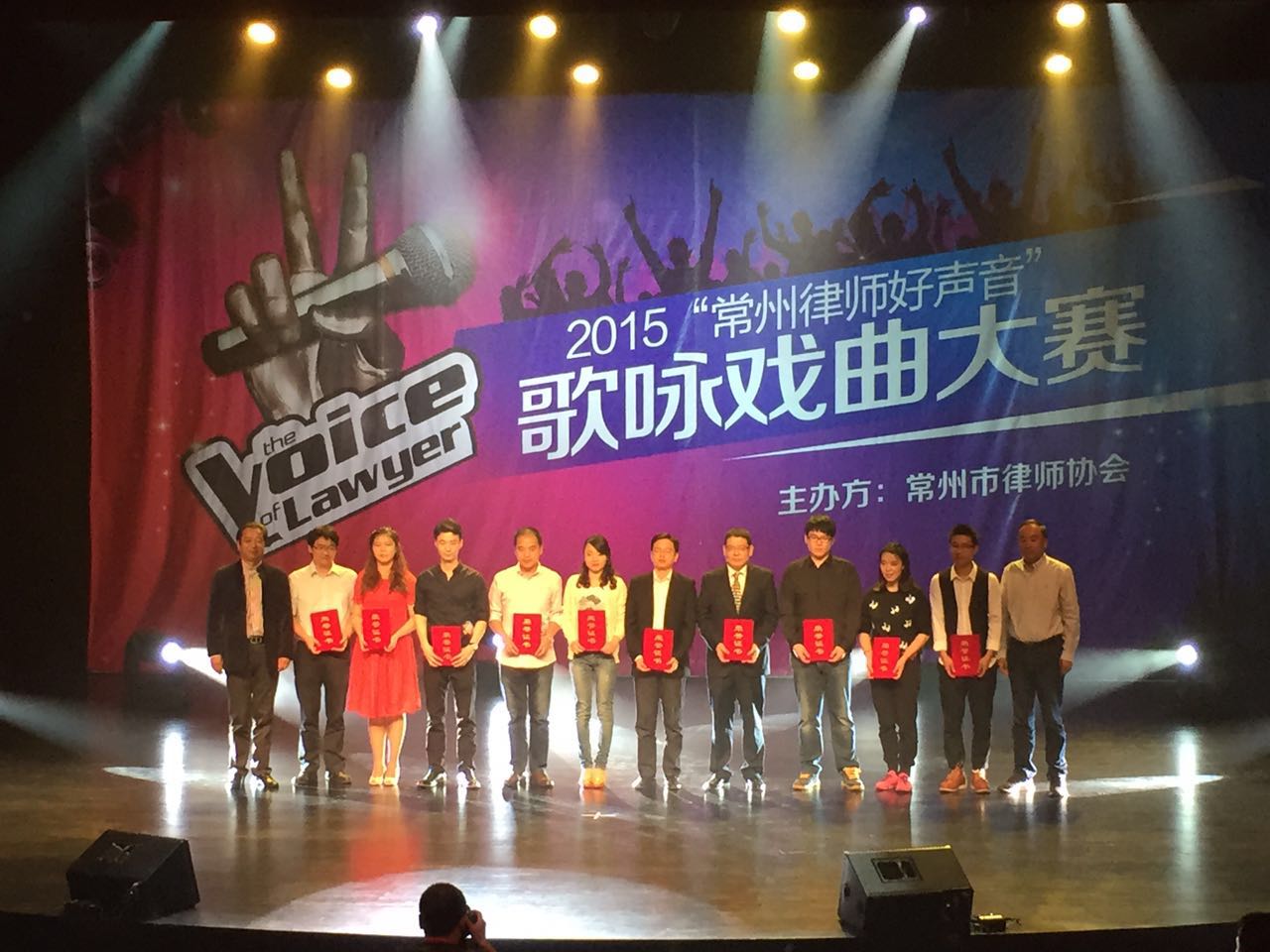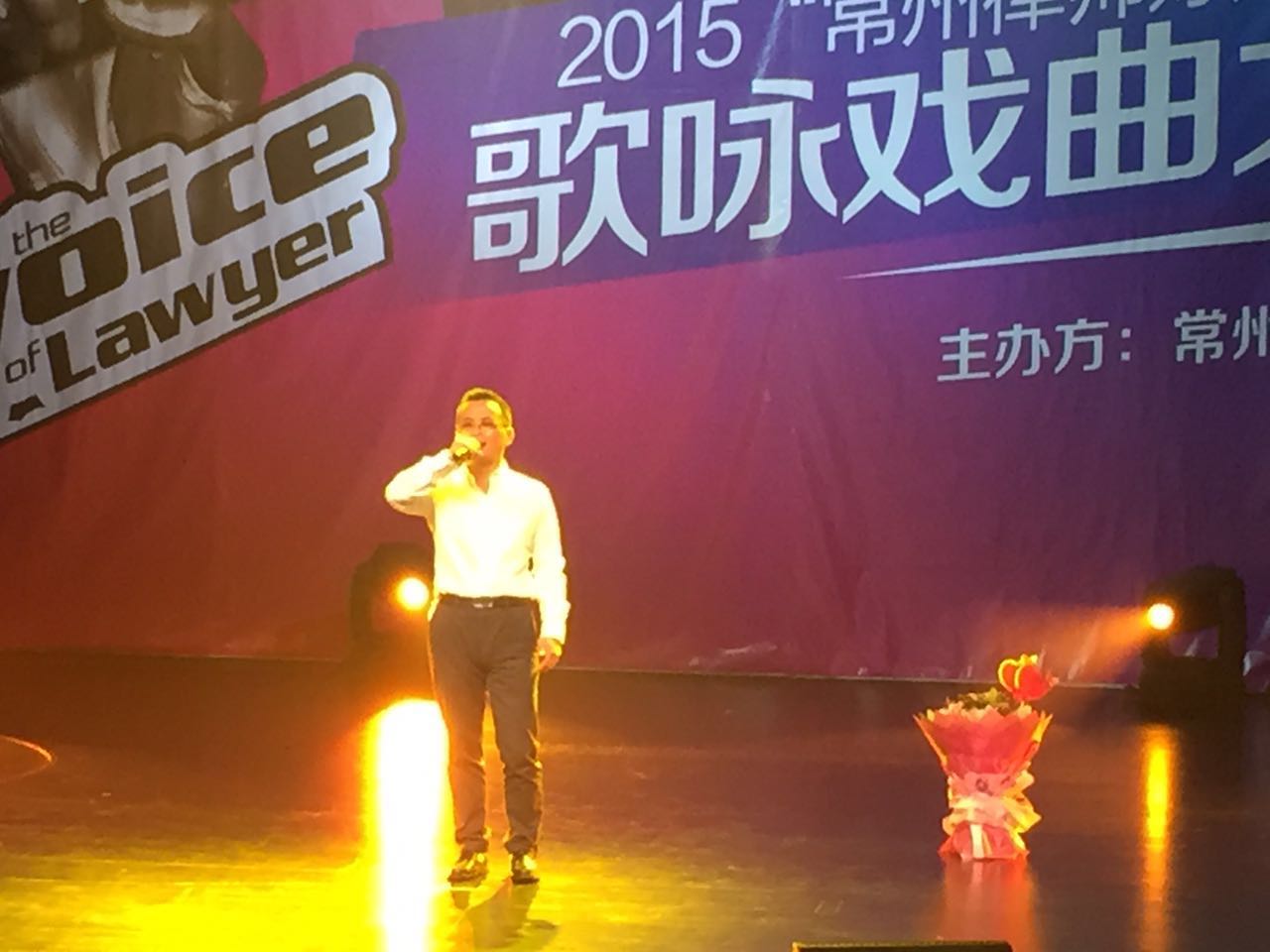 10月18日,常州大戏院小剧场内歌声阵阵,由常州市律师协会组织举办的“常州律师好声音”歌咏大赛在这里举行,振和所主任宋振江与朱珮瑶律师作为参赛选手先后登台亮相一展歌喉,宋振江以其抒情男中音演唱了一首额尔古纳乐队版的《鸿雁》,朱珮瑶身着华丽的演出服演唱了一首流行曲《为你我受冷风吹》。这次大赛全市及各辖区各个律所共有四十多名参赛选手,常州市司法局领导、文广系统相关专家在场观摩,并对此次活动给予了高度评价。